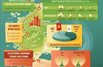 Dünya genelinde, uygulama marketlerinin indirilme sayılarının yüzdelik oranlarına bakıldığında Appstore'un %53'lük dilimini Amerika, Çin ve Japonya oluştururken, Google Play'in %51'lik uygulama indirme dilimini Amerika, İngiltere ve Almanya oluşturuyor.