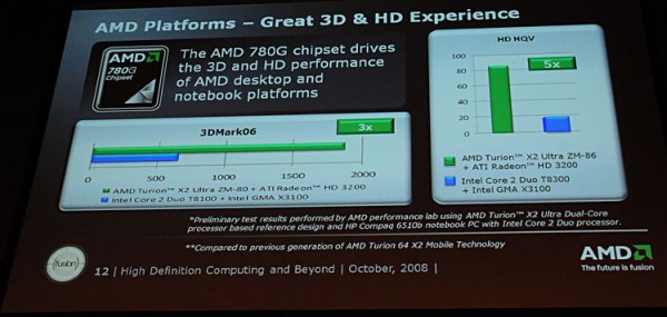 Her ne kadar Centrino 2 ile birlikte Intel, GMA X4500 HD IGP'sini kullanmaya başlamış olsa da grafik performansı ve çoklu ortam yetenekleri açısından AMD'nin rakibinin önünde kalmaya devam ettiği belirtiliyor.