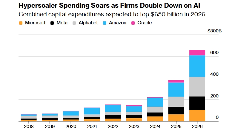 Gelinen noktada Meta, Microsoft, Amazon ve Alphabet gibi devler yapay zeka algoritmalarını eğitmek ve barındırmak için veri merkezlerine astronomik bütçeler ayırıyor. 2024’te 217 milyar dolar olan harcamalar geçen yıl yaklaşık 360 milyar dolara çıkmıştı. 2026 için ise bahsedilen toplam harcama 670 milyar dolar civarında.