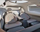 İki koltuklu bir kabine erişim sağlayan sürgülü kapıları olan aracın ön tarafında 43 inçlik geniş ekran bulunurken 17 hoparlörlü ses sistemi ve beş pozisyonlu yatabilen koltuklar birinci sınıf şehir içi yolculuğa zemin hazırlıyor.